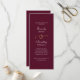 Dieses weiße Schriftzeichen auf einem dunkelburgundischen Hintergrund mit goldenem Ampersand ist ein elegantes Programm für Ihren Hochzeitstag. Personalisieren Sie alle Informationen einschließlich der Zeremonie Details und Teilnehmer auf der Rückseite mit dem gleichen Script-Schriftart