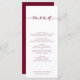 Burgundy White Simple Script Wedding Dinner Menükarte