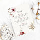 Laissez-vous séduire par le charme captivant de notre carte de Mariage "Burgundy Winter Elegance". Cet élégant ajout à notre collection de papeterie mariage présente les mêmes motifs floraux enchanteurs dans un bordeaux riche et blanc pur, évoquant le romantisme et la beauté de l'hiver. La carte de Mariage "Burgundy Winter Elegance" fournit des informations essentielles pour vos invités, notamment les détails de la réception, les options d'hébergement et d'autres détails importants liés à votre journée spéciale. Avec une typographie claire et sophistiquée, la carte garantit que tous les détails pertinents sont présentés avec goût et de manière organisée. Inspirés par les fleurs enchanteresses de votre thème mariage, les délicats accents floraux qui ornent les bords et le centre de la carte ajoutent une touche artistique, s'harmonisant avec le reste de votre suite de papeterie mariage. La conception réfléchie est un témoignage de l'attention et du soin que vous avez apporté à chaque aspect de votre célébration mariage. Alors que vos invités dévoilent la carte de détails Mariage "Burgundy Winter Elegance", ils seront attirés dans l'embrassade chaleureuse de votre histoire d'amour. La riche teinte bordeaux et les délicats motifs floraux créent un air d'anticipation pour la célébration magique qui vous attend. Encouragez vos invités à accéder à des informations supplémentaires via votre site Web mariage en incluant le lien sur la carte. Ce geste pratique et réfléchi permet à vos proches de rester informés et de s'immerger pleinement dans les festivités joyeuses. Imprimée sur un carton de haute qualité, notre carte de détails Mariage "Burgundy Winter Elegance" exhale élégance et sophistication, donnant le ton de la célébration mariage exquise que vous avez planifiée. Complétez votre suite de papeterie mariage avec cet ajout enchanteur, afin que vos invités aient toutes les informations nécessaires à portée de main tout en capturant leur coeur avec la beauté de votre mariage d'hiver. Commandez dès aujourd'hui vos cartes de Mariage personnalisées 'Burgundy Winter Elegance' et offrez à vos invités un aperçu des moments magiques qui les attendent.