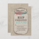 Cette charmante carte RSVP rustique est ornée d'un arrière - plan imprimé à l'allure d'un burlap avec un bocal de mason et un tournesol. Parfait pour votre mariage à thème vintage ou rustique. Il s'harmonise parfaitement avec les invitations de mariage assorties et Save the Dates. Contactez-moi pour obtenir des couleurs personnalisées.