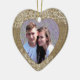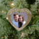 Dieses Urlaubssake-Ornament bietet Ihnen ein eigenes Foto in einem hübschen, braunen Imitat-Einschnitt und einen weißen, blumengeschmückten Rahmen. Die Rückseite des Ornaments hat den gleichen herzförmigen Rahmen mit Ihrem eigenen Text in Braun. Das macht ein schönes Sake-Geschenk für frisch vermählte oder ein Paar. *Lace and burlap Design Credit für ChiliPapers.