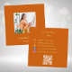 Ein trendiger, orangefarbener Hintergrund. Personalisieren Sie Foto, Namen und Text auf der Vorderseite und fügen Sie sie hinzu. Zurück: Vorlagen für Ihren Namen, Titel, Telefonnummer, E-Mail- und Website-Adresse, QR-Code für Ihre Website, Facebook und Instagram-Symbole/Konten