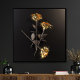 A striking surreal artwork featuring glowing golden roses emerging from darkness, blending elegance with intensity. The metallic petals reflect warm light, symbolizing passion, beauty, and fragility balanced against a deep, dramatic background. This piece brings a sense of luxury and emotional depth, making it perfect for modern interiors, contemporary wall art, and bold statement décor.
