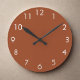 Ein verbrannter, orangefarbener, terrakottfarbener Hintergrund. Weiße Uhrennummern.