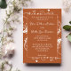 Laden Sie sich mit einem Burnt Orange Blüh Wedding Einladung zu Ihrer Hochzeit ein. Das Einladungs-Design zeichnet sich durch eine elegante, weiche und farblich abgestimmte Umgebung aus. Personalisieren Sie mit dem Bräutigam und den Namen der Braut zusammen mit dem Hochzeitstag und der Lage. Mit diesem Design sind auch weitere Hochzeitswaren erhältlich.