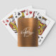 Diese eleganten personalisierten Spielkarten verfügen über ein Monogramm und einen Vornamen in modernen beige-weißen Schriften auf einem trendigen, verbrannten orangen Imitat mit Metallhintergrund.