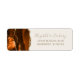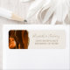 The left-hand edge of this elegant modern wedding invitation return address label features a burnt orange watercolor agate border trimmed with faux gold glitter. The customizable text combines gold-colored handwriting and copperplate fonts on an ivory background.
