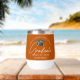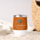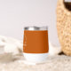These modern burnt orange custom senior graduation wine tumbler features your high school or college name for the class of 2026. Customize with your graduating year under the chic handwritten script and grey grad cap for a great personalized graduate keepsake gift.