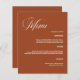 Orangefarbener Hintergrund. Personalisieren und hinzufügen Sie Ihre Namen, Datum und Menü. Weißer Text. 1 Blatt = 1 Menü, mit dem die Kante an Kante aufgedruckt ist.