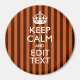 A personalized trendy burnt orange stripes decor Keep Calm and Carry On style saying on a custom gift. Humorous or whimsical try on your creative words on the two editable lines of text. Remember to use CAPITAL letters for best results.