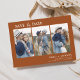 Paysage moderne et élégant Horizontal Trois (3) Photo Enregistrer la date Magnet Mariage avec typographie manuscrite. L'aimant d'invitation de date inclut la typographie de script et le design chic et simple auquel vous pouvez ajouter votre photo de fiançailles customisée à.