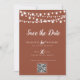 Burnt Orange - Terracotta String Lights Modernes Script Save the Date Template für Sie anpassen. Fügen Sie Ihr schönes, Foto auf der Rückseite der Einladung/Ankündigung.