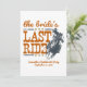 Yee haw!!! It's time to celebrate one last time before this cowgirl gets hitched! It's the bride's last ride before she settles down, also known as a bachelorette or hen party. Design features a cowgirl racing on her horse with distressed western and fat script text and stars. Perfect for a western or country themed event. Shown in burnt orange. Also available in a combination of pinks, state flag blue and red, and maroon. Matching products available.