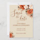 Genießen Sie Ihren besonderen Tag mit unserer atemberaubenden Farbpalette aus Bronze, Orange, Beige, Terracotta und Rostfarben. Unsere wunderschön gestaltete Einladung strahlt Wärme und Eleganz aus und setzt den Ton für ein romantisches und unvergessliches Ereignis. Die erdigen Farben schaffen ein Gefühl von Komfort und Stil, perfekt für eine rustikale oder böhmische Hochzeit. Teilen Sie Ihre Liebe stilvoll mit dieser zeitlosen Einladung, die das Wesen Ihres besonderen Tages erfasst.