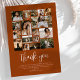 Eine minimalistische Terracotta Hochzeit Dankeschön Karte an Familie und Freunde zu senden, um Ihre Wertschätzung von ihnen zu zeigen, helfen Ihnen Ihren wunderbaren Tag zu feiern. Mit einer 17 Hochzeitscollage, dem Titel "danke" in einem eleganten Drehbuch-Schriftart, und einem personalisierten Dankeschön-Hinweis.