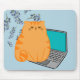 Grumpy orange cat hat viel zu tun auf dem Laptop.