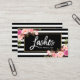 Modernes Bürsten-Skript, Aquarell-Rosa erröten mit Blumen, Peitschen-Maskenbildner Striped Visitenkarte
