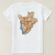 Die Vorderseite dieses T - Shirt zeigt mutig die burundische Fahne mit ihrem charakteristischen Mittelmotiv, das mit weißen Diagonalen über Rot und Grün versehen ist. Hinter dem Bild befindet sich eine attraktive Landkarte Burundis.