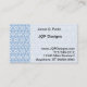 Le motif bleu (composé d'hexagones, de barres, de triangles et de cercles), est multiplié sur toute la carte. La marge verticale gauche est de couleur foncée, le reste du motif est un arrière-plan plus léger vers les informations commerciales pertinentes de Nom, Entreprise, numéros de contact (tous à personnaliser).