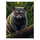 Ein Buschbaby mit auffallenden orangen Augen sitzt ruhig auf einem Ast mitten im üppigen Dschungelgrün. Die detaillierte Fellstruktur und der aufmerksame Ausdruck schaffen eine fesselnde Szene.