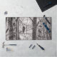 Photo en noir et blanc d'un faucon perché sur une branche dans un groupe d'arbres. Copyright ©2024 Kimberly J Tilley. zazzle.com/store/developingnature
