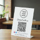 Make it easy for customers to follow, connect, and engage with your brand using this custom “Connect With Us” QR code pedestal sign. Designed with a clean white background, modern typography, space for your logo and Facebook and Instagram social media handle, this professional tabletop sign creates an inviting, contactless way for customers to reach your business online. Zazzle automatically generates the QR code from the website or link you provide, ensuring a smooth setup and reliable scanning experience. The prominent QR code lets visitors instantly access your website, social media, menu, services, or booking page with a single scan -- no typing required. Social media icons and your handle help boost followers while reinforcing brand recognition at the point of interaction. Perfect for retail counters, salons, cafés, restaurants, clinics, offices, events, and pop-up shops, this pedestal sign elevates your space while streamlining customer communication in a sleek, professional format.