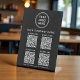 Give customers multiple ways to connect with your business using this multi-QR Code pedestal sign, designed for clarity, flexibility, and a polished professional look. Featuring a clean black layout, modern white typography, and your logo and business name, this tabletop sign allows you to display up to 4 scannable QR codes, each with its own custom label for clear navigation. Ideal for restaurants, cafés, salons, boutiques, clinics, gyms, offices, events, and trade shows, this pedestal sign lets customers quickly access different destinations—such as your website, menu, booking page, pricing, reviews, social media profiles, or payment links—all from one convenient display. Simply enter your URLs, and Zazzle automatically generates each QR code. Freestanding and easy to place on counters, desks, or reception areas, this QR code pedestal sign helps streamline customer interactions, reduce printed materials, and support a modern, contactless experience while reinforcing your brand identity.