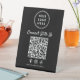 Make it effortless for customers to connect with your brand using this modern black tabletop pedestal sign. Designed for countertops, checkout areas, and event tables, this sign features a clean QR code layout that instantly directs customers to your website, menu, booking page, or Facebook, Instagram, and TikTok social media profiles. Zazzle automatically generates the QR code from the website link you provide, ensuring accuracy and a seamless setup. Perfect for retail stores, cafés, salons, trade shows, pop-ups, and professional events, this sturdy pedestal sign stands upright and remains highly visible without taking up valuable space.