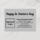Alles Gute zum St. Patrick's Day! Ein weiterer Feiertag, um diesen März zu feiern und auch Ihr Unternehmen zu werben oder Ihren Markennamen zu fördern. Grün ist immer die Farbe für diesen Urlaub, aber versuchen Sie auch andere Farben. Graue Farbe Gehäuse Karte, die Sie anpassen können, um Ihre geschäftliche Marke und mit Saint Patrick's Day Gruß. Dies kann die Farbe sein, die zu Ihrem Geschäftsfarbschema passt. Personalisieren Sie es und nutzen Sie es, um Ihre Kunden oder Kunden zu begrüßen diesen St. Patrick’s Day und als Marketing-Material, um Ihr Unternehmen zu werben oder um Ihren Markennamen zu fördern. Sie können es auch als Zubehör für Verpackungsmaterial Ihres Produkts verwenden. Anpassbare Gehäusekarte, mit der Sie Markenbewusstsein schaffen können. Um diese Gehäusekarte anzupassen, laden Sie Ihr Firmenlogo hoch, geben Sie Ihren Firmennamen, Ihre Adresse, Telefonnummer, E-Mail und Website oder Ihre Social-Media-Webseite ein. Bitte Karo nach dem Hochladen von Logos und Schriftzeichen auf der Vorder- und Rückseite. Wenn Ihnen das Aussehen gefällt, können Sie jetzt Ihre Bestellung aufgeben. Wenn Sie das Logo und die Texte so verändern müssen, dass sie auf diese Gehäusekarte oder auf die gewünschte Größe passen, ändern Sie bitte das Design-Tool. Sie können auch die Hintergrundfarbe, die Farbe des Schriftartes und den Stil des Schriftartes im Designwerkzeug ändern. Wir wünschen Ihnen viel Glück, Freude und mehr Umsatz in diesem Urlaub.