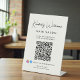 Chic light cream custom pedestal tabletop sign for your business featuring your name in a stylish signature script monogram and business type below in simple modern lettering. Input your website address to create a QR code that customers and clients can scan for appointments, products, services, hours, etc. Add your instagram and facebook user ids for customers to follow you on social media.