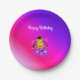 Eine süße, geschäftige Honigbiene mit violetten Blumen auf einem farbenfrohen rosa und lila Hintergrund. Die Worte "Geburtstag glücklich" können geändert oder entfernt werden. Andere passende Party-Elemente finden Sie in diesem Design.