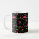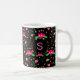 Busy Floral Pattern on Black Monogram Kaffeetasse