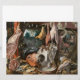 Dieses Design zeigt ein Gemälde des niederländischen Künstlers Pieter Aertsen (1508-1575). Es zeigt eine bäuerliche Marktszene mit einer großen Vielfalt an frischen Lebensmitteln: Fleisch, Schinken, Schinken, geräucherter Fisch, Schweine Beine und Kopf, Brot, Butter, Milch, Käse und hängende Brezeln. Die verschiedenen Fleisch- und Wurstsorten, Rindfleisch, Fisch, Geflügel und Schweinefleisch sind auf Holztischen mit Körben, Töpfen und Tellern angeordnet. Ein Fass und einige Korbstühle dienen auch als Behälter für die verschiedenen Lebensmittel. Es ist ein meisterhaftes Stillleben-Gemälde. Im Hintergrund gibt es eine Szene aus dem biblischen Thema der Flucht nach Ägypten, wo die Jungfrau, die Maria gesehen wird, unterwegs gestoppt wird und den Armen Almosen gibt. Die Fülle und der Reichtum des Essens im Stall ist möglicherweise eine Satire auf Glutton. Das ursprüngliche Gemälde wurde 1551 fertig gestellt und befindet sich heute im Kunstmuseum North Carolina, Raleigh, North Carolina, USA.
