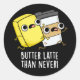 Butter spät als nie lustig Lebensmittel Puff Runder Aufkleber