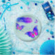 Regenbogenschmetterlinge auf hellblauem Hintergrund mit Blumen oben. Ein niedliches Thema für ein besonderes Mädchen zu ihrem Geburtstag.