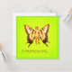 Ein surreales Bild zeigt eine Frau mit Schmetterlingsflügeln, begleitet von einem Text, der die Natur ihrer Realität und Identität hinterfragt. Der Hintergrund ist eine solide Farbe, die den surrealen und kontemplativen Charakter der Komposition verstärkt.