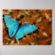Blauer Morpho-Schmetterling auf abstraktem Hintergrund.