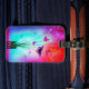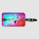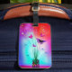 Dieser Gepäckanhänger hat eine Schmetterlingskunst darauf.