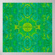Poster mit skurrilen Arabesken Muster voll von Sommervibes. Stilisierte Blume, Schmetterlinge, Baumzweige und Solarzellen. Vintag / ethnisch / böhmisch / boho / hippie / 70er / Newage Stil. Gelbe und grüne Farben, handgezeichnete Pastellstruktur. Farbpalette: Meeresgrün, Goldene Gelb, Aquamarine, Chartreuse. © Julia Khoroshikh www.juliakhoroshikh.art #mandala #floralmandala #summervibes #bohemian #bohemianarabesque #zazzlemade #posters