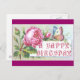Eine Vintage Geburtstagskarte aus dem späten 19. Jahrhundert mit einem Schmetterling auf einer rosa Rose.