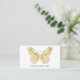 Ein eleganter weißer Hintergrund mit einem vergoldeten Schmetterling aus Imitat. Personalisieren Sie Ihr Firmenlogo und Text auf der Vorderseite und fügen Sie es hinzu. Zurück: Vorlagen für Ihren Namen, Titel, Telefonnummer, E-Mail und Website-Adresse, QR-Code. Ideal für Unternehmerinnen, Berater, Geschäftsinhaber.