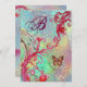 Whimsikal leuchtend rot Fuchsia Frühlingsblüten Schnörkel, Blüten und Blüten in blau grün, aquamarinen Farben . Einzigartiges Design und Malerei mit goldener und silberner Folie.