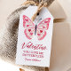 Dieses Schmetterlingsthema-Tag ist perfekt für den Valentinstag, mit einem farbenfrohen rosa und roten Schmetterling mit Herzmustern auf seinen Flügeln.