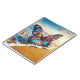 The image features a spiral notebook adorned with a beautiful butterfly design against the backdrop of a beach. This scene combines elements of nature and art, showcasing the intricate details of the butterfly alongside the serene coastal environment.