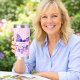 Ein griechisch rosa Hintergrund mit lila Schmetterlingen, rosa und lila Blumen, rosa Konfetti. Personalisieren Sie Ihren Namen und fügen Sie ihn hinzu.