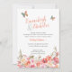 Korallen und Grün, Aquarellblumen und schöne Schmetterlinge auf schlichtem weißem Hintergrund verleihen diesem ein boho chic Ambiente. Vollkoralle auf der Rückseite. Lebhaft und skurril für eine romantische Hochzeit im Frühling/Sommer.
