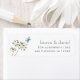 Butterfly-Wildblume nennt Rücksendeadresse Hochzeit. Ein minimalistisches zeitgenössisches Design mit Wildblume und blauen Schmetterlingsmotiven. Personalisieren Sie sich einfach mit Ihren Namen und Rücksendeadresse. Ändern Sie den Text und die Hintergrundfarbe, wenn Sie Ihre eigene Hochzeitsfarbe Thema über die Option Weitere bearbeiten möchten.