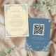 Versenden Sie eine klassische Hochzeitskarte mit dieser eleganten Butter Yellow QR Code Details Enclosure Card, die die perfekte Kombination aus verziertem Design mit einem küstennahen Chic und alten Geldästhetikum mit staubigen blauen Akzenten ausstrahlt. Vielseitiges Design ist perfekt für das Paar, das ein romantisches Thema mit einer klassischen Kombination aus Schrift und Typografie und einem leicht Retro-Vintagen grafischen Element kreiert. Entworfen von Simple Desert Designs Studio. Melden Sie uns für mehr kundenspezifische Farben, um Ihre spezifische Farbe.