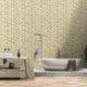 Die Tapete ist mit einem Aquarellkronenmuster in Schattierungen von Butterscotch und Honiggelb mit Taupbraun für einen modernen Look versehen.