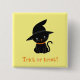 Auf diesem Halloween-Button-Button wird ein niedliches Bild eines schwarzen Kätzchens mit einem Hexenhut mit der Meldung "Trick or treat" gezeigt. Tragen Sie sich, macht auch ein tolles kleines Geschenk für Halloween!